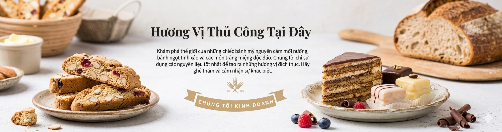 Hãy đến với tiệm bánh của chúng tôi, nơi mang đến những chiếc bánh ngọt tuyệt hảo được làm từ nguyên liệu tự nhiên, chất lượng cao! Chúng tôi tự hào sáng tạo ra những hương vị độc đáo, không chỉ đánh thức vị giác mà còn chinh phục cả trái tim bạn. Đừng bỏ lỡ cơ hội thưởng thức những món bánh thơm ngon và tươi mới mỗi ngày. Ghé thăm chúng tôi ngay hôm nay để trải nghiệm sự khác biệt!